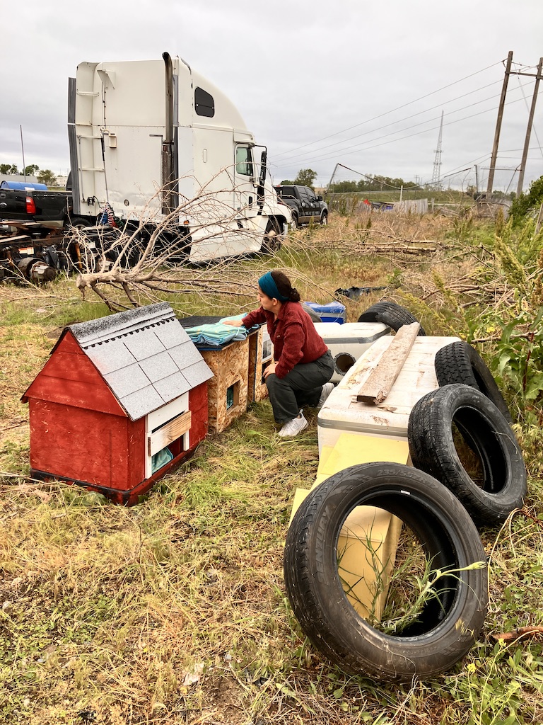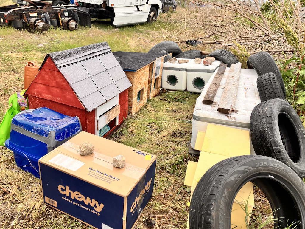 At first, I had very little—just cardboard, straw, and anything that could help block the winter wind. After reaching out to local rescues and community groups for guidance, I learned that many of the cats had previously been TNRd by established organizations. Their work helped stabilize the population, but the site did not have anyone providing consistent follow-up care, such as regular feeding or weather-protected shelters. As conditions worsened, several kind individuals stepped forward with materials and insulated shelters, helping replace the early makeshift boxes with sturdier protection from the snow and elements.